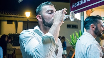 A media mañana, cuando termina la primera misa, la ciudad ya se ha despertado del todo y se escuchan por todos lados rasgueos de guitarras, golpes de cajón, cantes y bailes. Solo hace falta pasear por las plazas, las terrazas y los bares de esa antigua ciudad de pescadores, de casas blancas, para encontrar decenas de "conciertos" improvisados de rumba y flamenco.