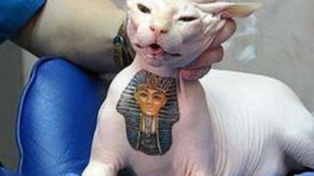 A algunos rusos les ha dado por decorar razas sin pelo, como el gato Esfinge, con vistosos tatuajes. Este diseño Tutankhamon tardó tres horas en hacerse. Estarán de acuerdo en que cada segundo valió la pena.