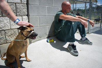 Los presos trabajan todos los días de la semana en equipos de tres para cuidar, entrenar y reformar estos animales hasta que encuentren un hogar.