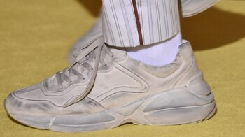 Recientemente, este calzado lleno de marcas de roce hizo aparición en la colección Cruise'18 de Gucci. Nadie ha hecho justicia a esta tendencia como el director creativo Alessandro Michele. Sus gruesas y desgastadas zapatillas recordaban a ese par que guarda tu padre en el garaje para cortar el césped. Rematadas con cordones atados de forma descuidada, las divinas zapatillas desataron un frenesí en los medios y sirvieron como insolente desviación del lujoso desfile de Michele que incluía encaje, seda y terciopelo.