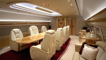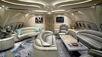 Pero para los Estados del Golfo y gran parte de las oligarquías rusas, "rico" significa algo muy distinto. Este grupo exclusivo de multimillonarios compran grandes aviones comerciales, desde Boeing a Airbus, y los adornan con alfombras tejidas a mano, paneles de madera, y oro por todos lados.