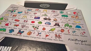 "La caja de la Kiwi Angus Burger es en definitiva mi favorita. En su diseño, encontrarás las características más famosas de Nueva Zelanda: el kiwi, un ave endémica; el famoso equipo de rugby All Blacks, la danza Maori Haka y su equipo de cricket".