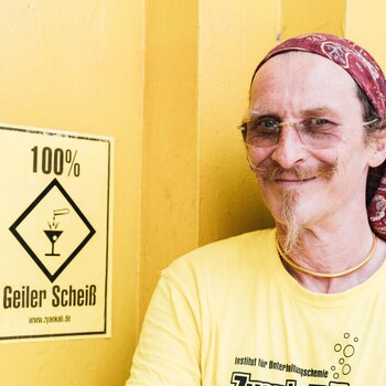 Tom Zyankali es un artista, químico y bartender legendario de Berlín, la capital alemana. En realidad es un técnico químico que se dedica a analizar trazas dañinas en toda clase de sustancias, pero cuando no está en el laboratorio, se encuentra detrás de la barra, aplicando las mismas técnicas de extracción química para la creación de originales cócteles.