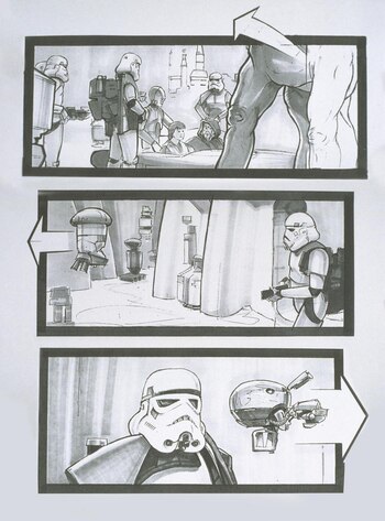 Bray: Los diseños originales de Ralph McQuarrie eran bastante retro. Hubo un poco de evolución — incluso en la película original de Star Wars—, pero la mercancía más reciente está volviendo a los diseños originales. Podrás ver elementos en los nuevos proyectos de Star Wars con diseños que los originales no usaron. En Star Wars Rebels, hay una nueva clase de conductores imperiales que manejan los troop transports y caminadores estilizados. Esos son diseños originales de McQuarrie. En Rogue One, los Death Troopers no son una copia exacta de McQuarrie, pero están basados en sus ideas originales: una combinación de sus primeros borradores de los Stormtroopers y de Darth Vader que no fueron usadas.