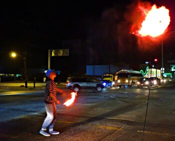 ¿Qué precauciones tomas para no ser atropellado por el tráfico vehicular mientras tragas y escupes fuego?
