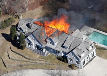 Una vez vi humo, así que nos desviamos y nos dirigimos hacia él. Era una mansión enorme en llamas. Llegamos antes que los bomberos. Nos quedamos sobrevolando el lugar una y otra vez. Saqué unas imágenes increíbles de esta (relativamente nueva) monstruosidad de mansión en llamas.