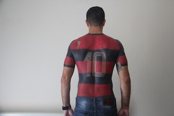 El 40 por ciento del cuerpo de Mauricio dos Anjos está cubierto por las rayas negras y rojas de su equipo, el Flamengo.
