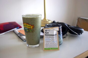 Comencé el día con otro smoothie de proteína. Pero esta vez añadí dos cucharadas de Greensect con espirulina y canela. De nuevo, sólo pude comerme la mitad. No pude evitar molestarme y preguntarme ¿qué me detenía? ¿Por qué no podía terminar un maldito smoothie? He sido vegana por cinco años, ¿pero no podía beber una simple malteada de grillos?
