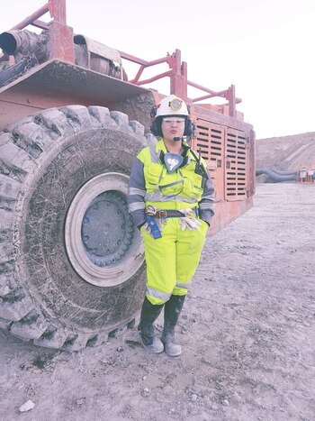 Yanina Colman tiene 26 años y hace tres que trabaja en Cerro Negro, un yacimiento de oro y plata en la provincia de Santa Cruz. En 2017 ganó el Premio a la Mujer Minera del Año por ser la primera en trabajar adentro de una mina subterránea.
