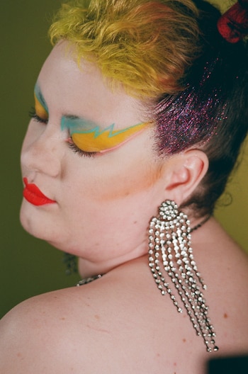 Al diseñar la sesión, Gamble quería evitar los tropos comunes que muchas veces se presentan en la belleza corporal de una editorial. "Debido a la falta de visibilidad de caras más regordetas, pareciera que los looks de maquillaje exagerado son exclusivamente para personas flacas", explica. "Ya me cansé de que la única cobertura 'diversa' de los tipos de cuerpo sea demasiado 'natural' de representar, y por lo tanto hacernos amar, nuestros 'defectos'".