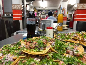 Con esa anécdota como antecedente, me di cuenta de que si me ocurría lo mismo ya no me sentiría tan avergonzado. Envalentonado, decidí firmar mi hoja y entregársela al muchacho. Mi novio hizo lo mismo y nos decidimos a asumir el reto. Fan de los tacos de suadero, mi chico pidió su charola inicial con 30 tacos de lo mismo. Como a mí me gusta variarle, mi charola iba más variopinta: 15 tacos al pastor, 5 de suadero, 5 campechanos y 5 de cabeza. También estaba el tema del refresco. "A mí me traes uno de mango, porfa", dije sin dudar. "Yo una Coca Light, por favor", dijo mi novio. Porque claro: se iba a comer 50 tacos, pero la Coca Light no podía fallar. Ah, la belleza de la ironía.