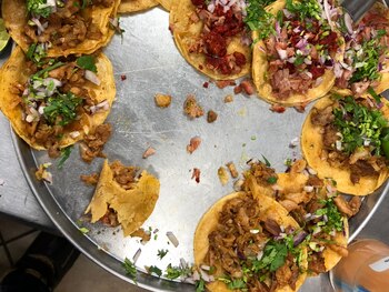 "Tengan estas hojas: léanlas detenidamente y una vez que hayan leído todo lo que dicen, las firman, nos las devuelven y ahora sí les podemos empezar a hacer sus tacos", me aclaró el mesero bonachón. Así fue como nos extendieron una carta a cada uno con los términos y condiciones, donde se especificaban cuáles eran las reglas del juego. Entre las cláusulas más importantes figuraban que los 50 tacos no se servían de una sola sentada, sino que primero te llevaban a la mesa una charola con 30 tacos. Una vez que el participante —o sea nosotros— se los terminaba, ahora sí podía ir pidiendo los tacos restantes hasta completar el desafío de los 50 tacos + 1.