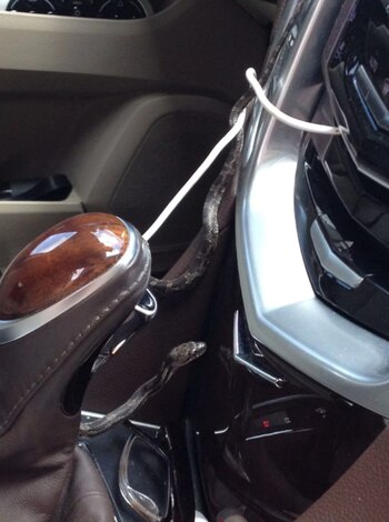 La ejecutiva miró hacia abajo, al lado del volante de su Cadillac SRX , y vio que una serpiente se estaba deslizando por el respiradero. Intentó mantener la calma, salió de la carretera, saltó del SUV y marcó el número de la policía.