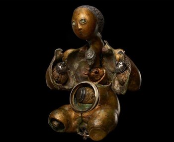 Gillian Genser trabaja como escultora desde 1991. Lo hacía solo con materiales naturales. Primero con cáscaras de huevo. Después, comenzó a modelar con huesos de animales, coral y plantas secas. Hace unos 15 años, comenzó a trabajar en una escultura del primer hombre, Adán, hecha con conchas de mejillones. Las conchas llegaban desde la costa Atlántica de Canadá y ellas las compraba a granel en el Chinatown de Toronto.