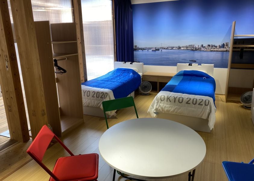 Village room replica in the plaza (ATR)Takashi Kitajima, Tokyo 2020 Games Operation Bureau Village Management Department, Village General Manager said: "The Village is surrounded by the sea on three sides to enjoy the sea breeze and the nature. It is a good location to welcome athletes and delegates. We have three zones. Village plaza, in the mixed zone, athletes delegates and media will go there. The yellow zone is the residential zone. This residential zone only athletes are allowed to enter. The green zone is the operational zone in order to support this event we need staff and an area to move things and for logistics [so] we have an operational zone.