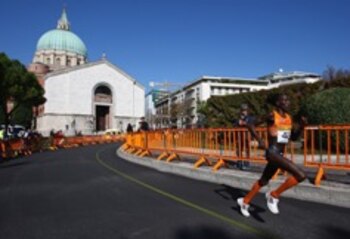 Lornah Kiplagat winds through Renaissance Udine. (Getty Images)(ATR) Running for the Netherlands, Lornah Kiplagat breaks an elite road race world record while hundreds of amateur runners participate in the event IAAF President Lamine Diack calls the gateway to athletics.