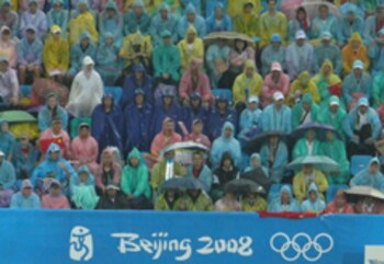 "I think this is just another reason why we play in bathing suits," U.S. gold medalist Misty May-Treanor observed. "I think it's harder being a fan sitting out in the rain than a player."