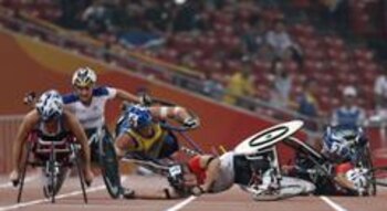 Six racers crashed in the women's 500m T54 wheelchair race. (Getty Images)Race Rescheduled after Massive Crash