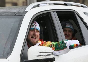 The head of the Chechen Republic, and former Chechen rebel, Ramzan Kadyrov led a motorcade beside the torch relay as it journeyed throughGrozny.