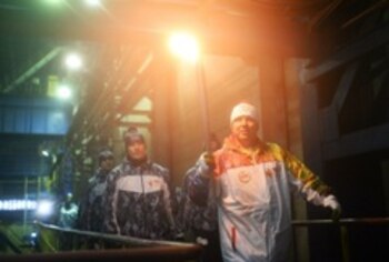 Over 100 people carried the torch before regional mayor Eugene Teftelev and former Magnitogorsk Iron and Steel Works chairman Viktor Rashnikov lit the Olympic cauldron in the city.