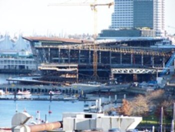 The convention center on the Vancouver waterfront will serve as the MPC for the 2010 Games, now undergoing a substantial expansion. (ATR)(ATR) Vancouver 2010 releases its rate card for the media as the World Press Briefing gets under way in the Olympic city. Compared to past Games, media will pay more for office space, less for Internet.