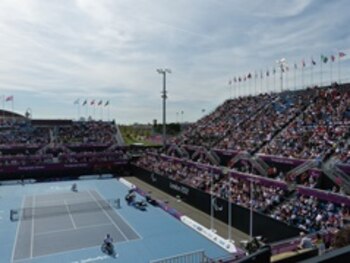 Though in the Park, Eton Manor suffers from its location across a busy highway, so it's not in the main region of activity.When ATR spoke with LOCOG deputy wheelchair tennis manager Jayant Mistry earlier this year, he brought up the concern of inclement weather not just for the players but for spectators, as there is very little shelter.