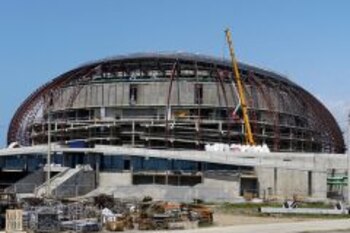 Mounting of the dome metal structure on the Bolshoi Ice Palace in the coastal cluster is currently under way. The venue for Olympic ice hockey will open in May 2012, becoming the first completed arena for Sochi 2014. First test events are scheduled for September of next year.