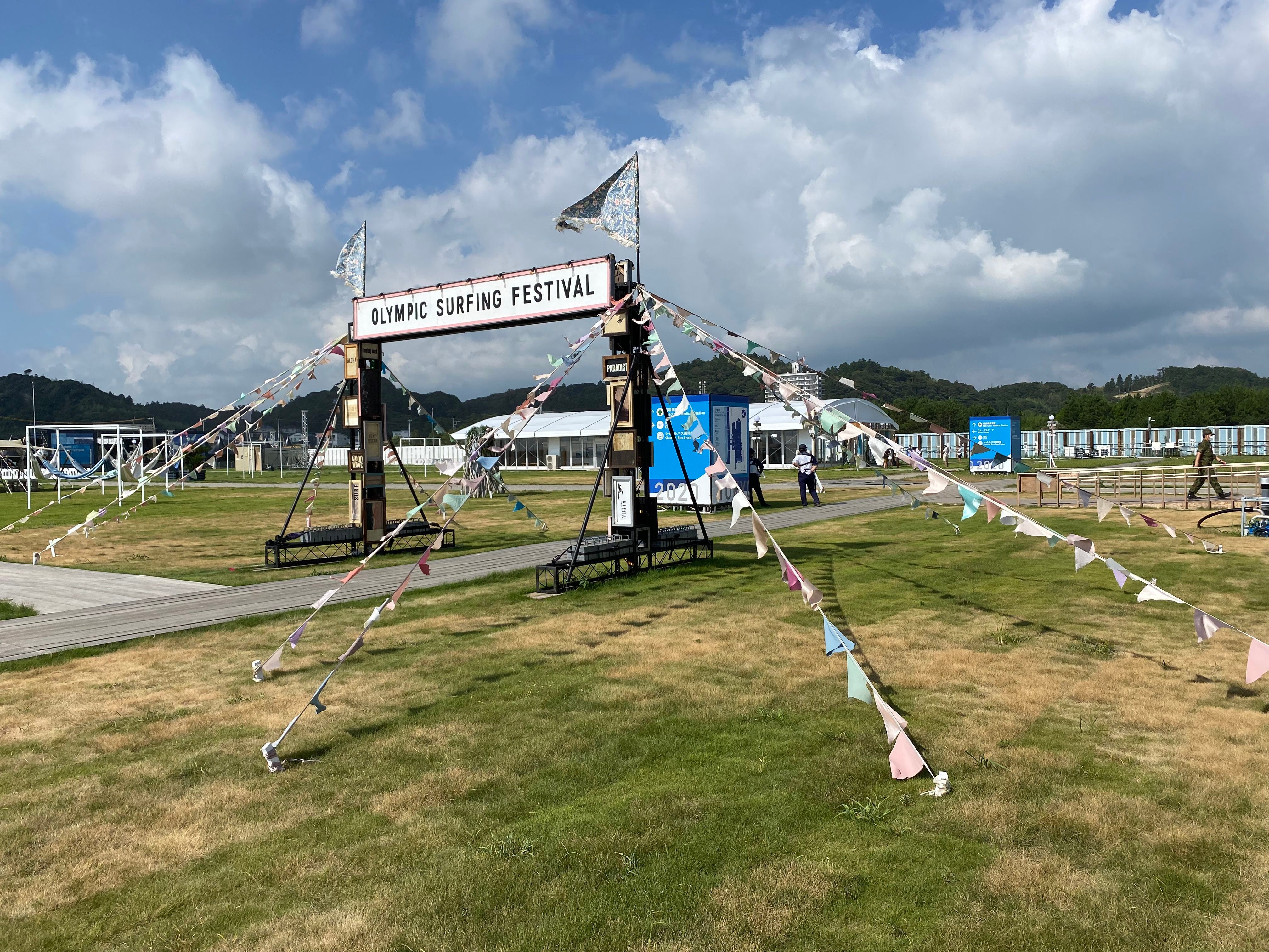 Tsurigasaki Surfing Beach is perhaps the clearest scene of Olympic dystopia. It is evident the interest that put the International Surfing Association (ISA) to achieve a special event, different. There is a meadow of soft grass overlooking the sea, there is a museum of surfing history, there is a whole installation called “Surfing Festival”, there are hammocks, rugs, comfortable cushions to spend time protected from the sun, there is music that one could listen to all afternoon without getting tired.