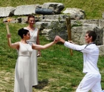 For the next week, 490 runners will carry the Olympic flame through Greece, including stops on the islands of Crete and Rhodes. The handover ceremony at the Panathenaic Stadium from the 1896 Games is set for the evening of May 17.