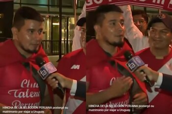 É o caso de um jovem que, segundo as câmeras da América TV, decidiu cancelar seu casamento e vender seu anel de noivado para viajar ao Uruguai e incentivar a seleção nacional.