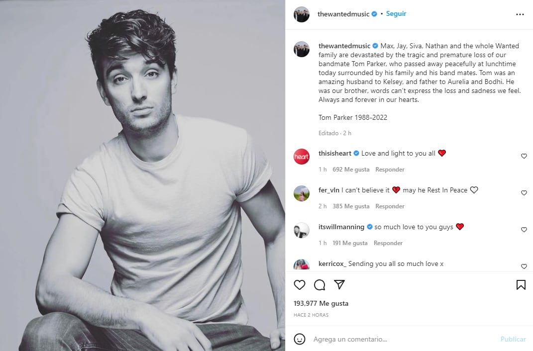 Tom Parker, membro da banda britânica The Wanted, morreu em 30 de março de 2022, depois de anunciar há menos de dois anos que tinha um tumor cerebral inoperável.