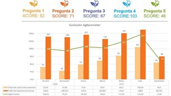 Por otro lado, el índice que mayor deterioro presentó, es el que está relacionado a las expectativas futuras, que incluye las percepciones sobre cómo estará el negocio de los productores a un año y sus percepciones de la economía agropecuaria en los próximos meses y a 5 años. El mismo, por primera vez se ubica en valores pesimistas, por debajo de 100, cuando en julio fue de 158, el mayor de la serie, y en septiembre 80, el menor de toda la serie.