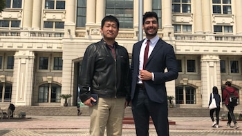 Las clases de la maestría en esta ocasión se cursan en Shangai Jiao Tong University pero ayer lunes Moyano no estuvo como alumno sino como "profesor": dio una charla sobre empleo y nuevas tecnologías a un grupo de alumnos de nacionalidad China de entre 23 y 25 años que están aprendiendo el idioma español en Shanghai International Studies University.