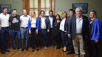 Ambos, junto a unos 30 colegas peronistas de distintas ciudades,entre ellos el jefe del partido Gustavo Menéndez, fueron este martes a hablar con los diputados y senadores del PJ en sus distintas variantes en la Legislatura de La Plata.
