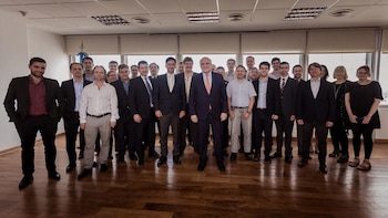 La reunión tuvo lugar en el salón Hamburgo del Club Alemán de Buenos Aires. Estuvieron muchos de los que lo acompañaron días atrás en la fiesta de fin de año de New York City: Fausto Spotorno, Gustavo Segré, Miguel Boggiano, Diego Giacomini, Eliana Scialabba, Daniel Lema, Mariano Fernández, Gustavo Lazzari, Jorge Bertolino, Manuel Adorni, Germán Messina, Leandro Moro, Guillermo Maresco, Juan Tyberian, Juan Martin Gazaneo, Guido Vignoli, Nicolás Naimo Charo, Martín Krause y Agustín Etchebarne. Una larga lista de economistas de perfil liberal.