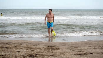 Bereciartua siguió los consejos del Gobierno y recibió el Año Nuevo junto con su familia en La Feliz y fue así que se lo vio nadando en la zona de la playa Alfar al sur de Punta Mogotes.