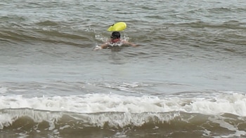 La natación a cielo abierto requiere destreza y cierta experiencia por los riesgos de sufrir accidentes y los nadadores tienen la obligación de usar una boya inflable para poder ser reconocidos por embarcaciones. El funcionario cumplió y salió con su boya correspondiente.