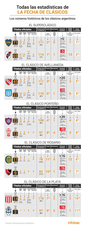 在历史上,两者都有争议要负责,因为博卡有5场比赛的优势对自己有利,它从未降级,它是拥有最正式头衔的机构,并且拥有自成立以来多年来获得最多席位的球迷。但是,拉班达(La Band a)的比赛取决于赢得的联赛数量,该系列赛与长期竞争对手并驾齐驱(包括马德里的解放者杯决赛)以及自创立以来在国内竞技场上获得的积分数量。