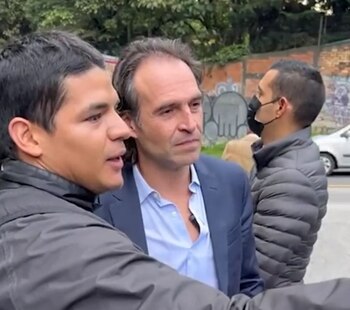 哥伦比亚队的总统候选人费德里科·古铁雷斯(FedericoGutiérrez)在全国各地举行的会议中。《历史契约》的追随者联系了它,他用手机记录了它,他们就竞选活动和该国的当前局势进行了交谈。