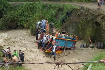 据当局称,chiva载有二十多名乘客,他们得到了该地区居民的协助。根据萨尔加市风险管理委员会的说法,事故发生在名为洛斯乌兰的桥上,坠入巴罗佐河。