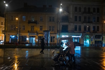 晚上20点08分,利沃夫的警报再次响起。紧张局势持续了60分钟,而紧张局势、雨水和俄罗斯火箭最终造成的悲剧使这座城市空无一人。人们走得很快,抬头望着天空,躲开水坑。