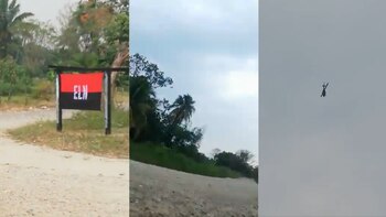 El ataque del grupo armado en contra del helicóptero quedó registrado en video. En él se aprecia cómo en medio de un pequeño poblado, rodeado con banderas del ELN, se escucha una ráfaga de disparos dirigidos a la aeronave; misma que, a pesar del ataque, logra seguir su camino en el firmamento.
