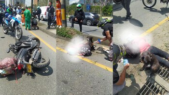 “Se despachan seis bomberos, una maquina extintora y una ambulancia. Al llegar al sitio nos encontramos con una femenina, la cual pierde el control de su motocicleta y choca contra el separador de las vías. Ella iba con su mascota, un pitbull, aparentemente enojado. Estaba encadenado a ella y tuvimos que realizar algunas maniobras para poder separarlos”, relató el secretario de gestión del riesgo de Bello, Wber Zapata Lopera.