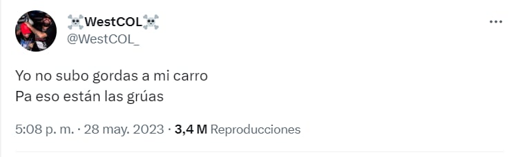 Esta afirmación nace a partir de una de las últimas publicaciones que realizó el antioqueño en su cuenta de Twitter, en la que sin mediar palabras o tener el más mínimo “temor” (a sus haters) apuntó contra las mujeres de talla grande o con sobrepeso escribiendo: “Yo no subo gordas a mi carro Pa eso están las grúas”.