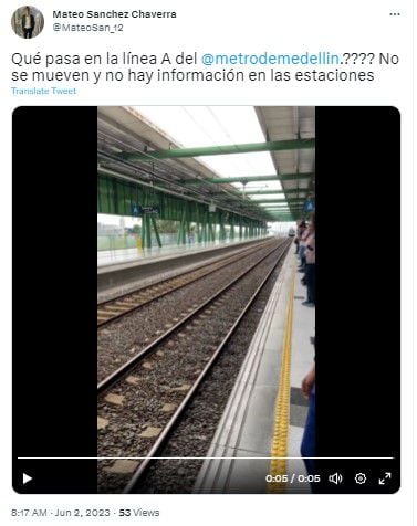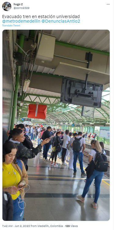 “Qué pasa en la línea A del @metrodemedellin.???? No se mueven y no hay información en las estaciones”, “Evacuado tren en estación universidad”, “Señores Secretaría de Movilidad de Medellín, nuestros amigos del @metrodemedellin hasta la hora no informaron nada. Nadie sabe qué novedad ocurrió (se rumora una rotura de riel), y tampoco se sabe si ya la novedad finalizó”, son algunos de los comentarios que hicieron los internautas.