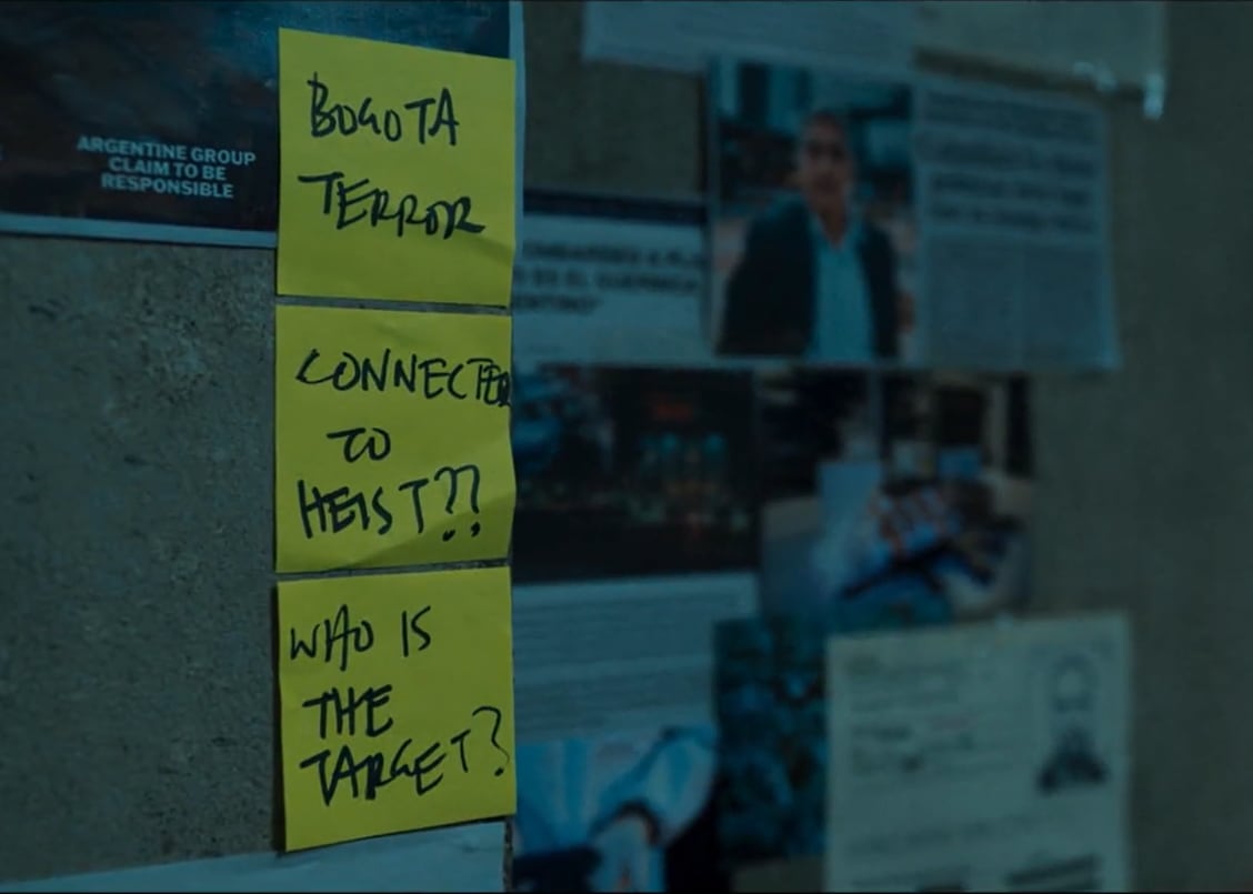 El tramo de la producción que fue revelado al público es protagonizado por los agentes Ross y Prescod en Moscú, Rusia, allí los agentes entablan una conversación en un cuarto en el que una de las paredes tiene varios hilos rojos y fotografías que hacen parte de una investigación, allí nuevamente observan varios papeles de color amarillo en los que se lee: “Bogotá Terror”, “Conectado el atraco” y “¿Quién es el objetivo?”.