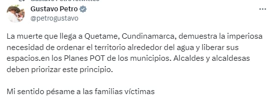 En Colombia se cuenta con herramientas como los Planes de Ordenamiento Territorial (POT) o las Alertas Tempranas, que permiten pensar y gestionar acciones de prevención. De hecho, el presidente Gustavo Petro se pronunció al respecto, asegurando que la emergencia demuestra la necesidad de “ordenar el territorio alrededor del agua” por medio de los POT.