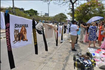 A las afueras del estadio, en medio de la gran expectativa por el concierto de Shakira, se pueden encontrar numerosos puestos de venta de mercancía de la artista. Camisetas, gorras, banderas y otros artículos con la imagen y el nombre de la cantante colombiana inundan los alrededores del recinto, donde cientos de fanáticos buscan llevarse un recuerdo del evento. Los vendedores ambulantes aprovechan la oportunidad para ofrecer productos conmemorativos, algunos de ellos inspirados en los diseños icónicos de la artista y en sus más recientes éxitos musicales.