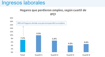 Para el 59 por ciento de los encuestados, los ingresos del hogar se vieron reducidos. Esto equivale a 3,6 millones de hogares y 15 millones de personas que tienen trabajo.