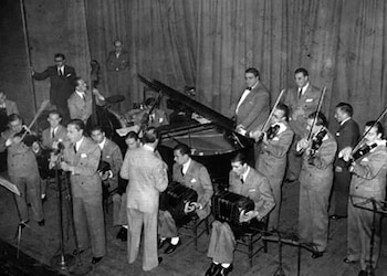 Pero el sonido y la pasión que generaba en los bailarines iba más allá: la propia figura del director dejaba de lado la seriedad al marcar. No lo hacía solo con las manos, D´Arienzo marcaba con todo su cuerpo y lo disfrutaba, reia y sonreia mientras inclinaba el torso sobre los músicos que lo miraban hasta con enamoramiento.